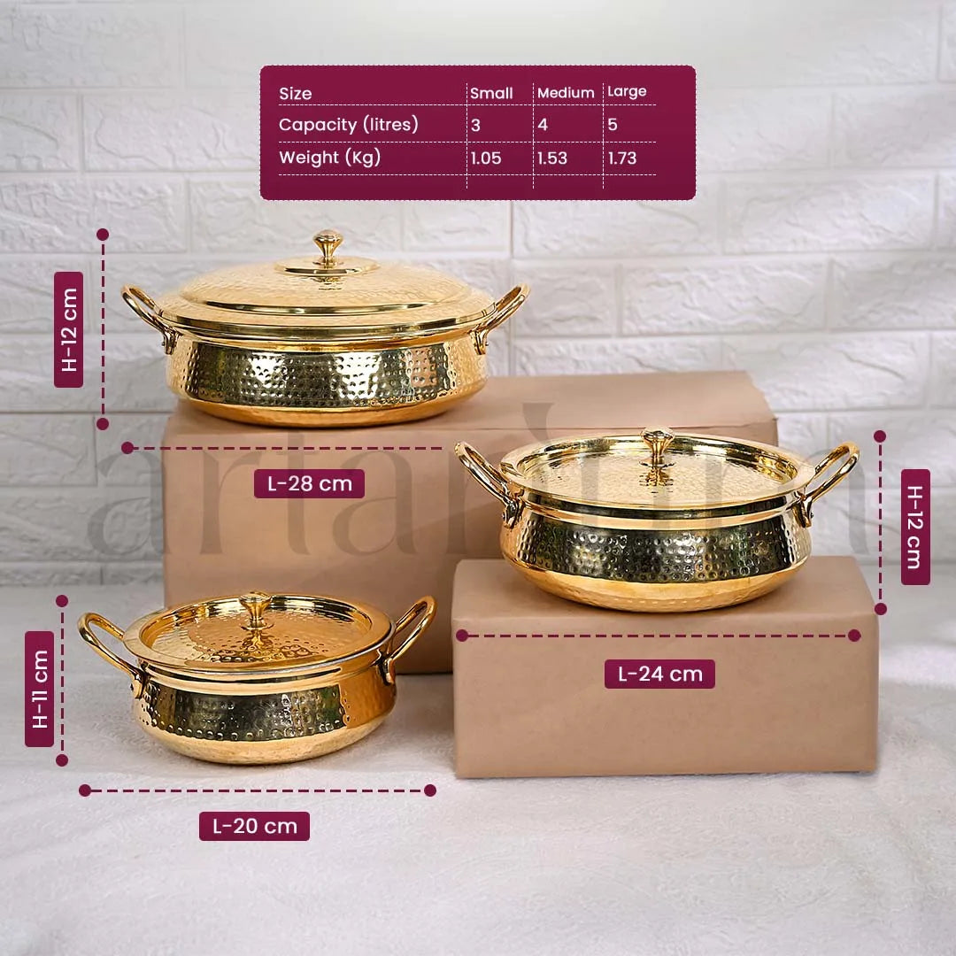 The Brass Handi with Lid allows you to slow-cook grandma’s recipes and make classic traditional meals. You can perfectly cook dum biryanis, simmer hearty stews, or make sweet confections. The pure brass frame helps in retaining all the essential nutrients and flavors. This Brass Lagan/Handi features a deep, durable design that is not just practical but also adds a rustic charm to your kitchen.