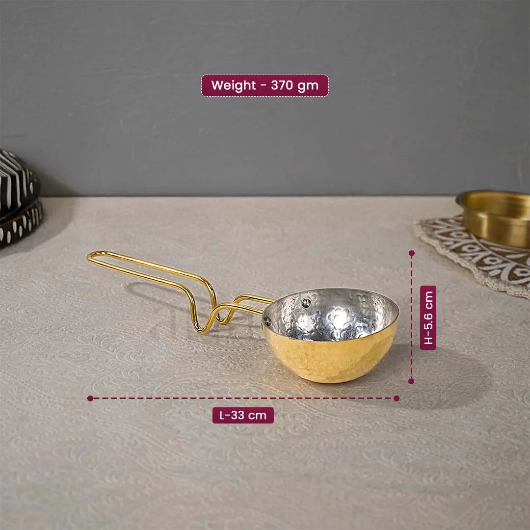 The Artarium’s Brass Tadka Pan completes the kitchen, allowing you to temper and garnish traditional dishesThis brass cookware is made of high-quality metal, making it a durable everyday accessory that heats up quickly, making your tadka sizzle to give that perfect aroma. This handy pan does it all – from providing a final touch to your lentils to adding a punch of butter to your curries.