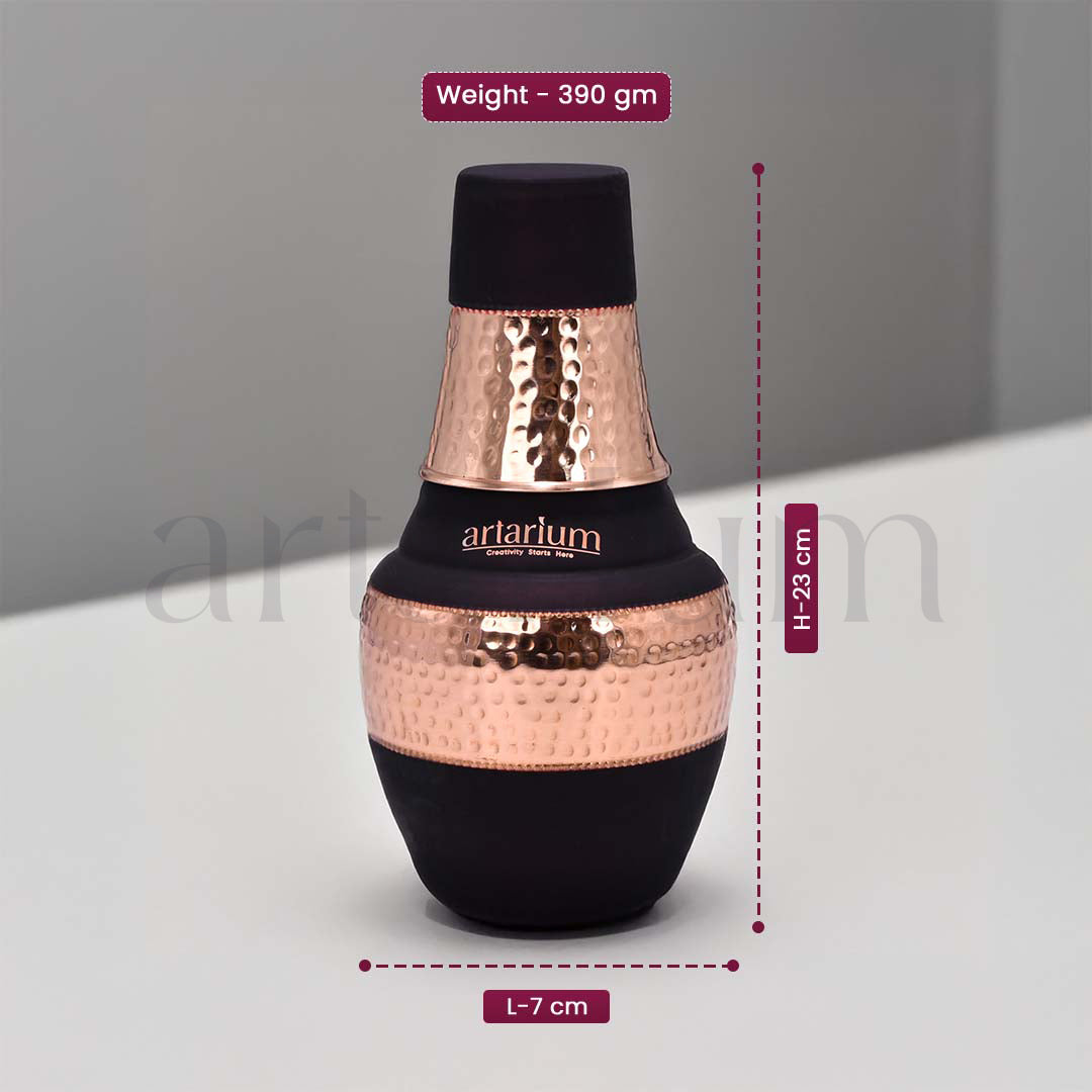The Venus copper jar makes for a sophisticated addition to your kitchen or dining space. With its sleek design and functional appeal, this water jar is perfect for storing water or other beverages while enjoying the natural health benefits of copper. Its ergonomic lid doubles as a serving glass for better convenience and the polished matte finish enhances its aesthetic charm, adding an elegant touch to your space.