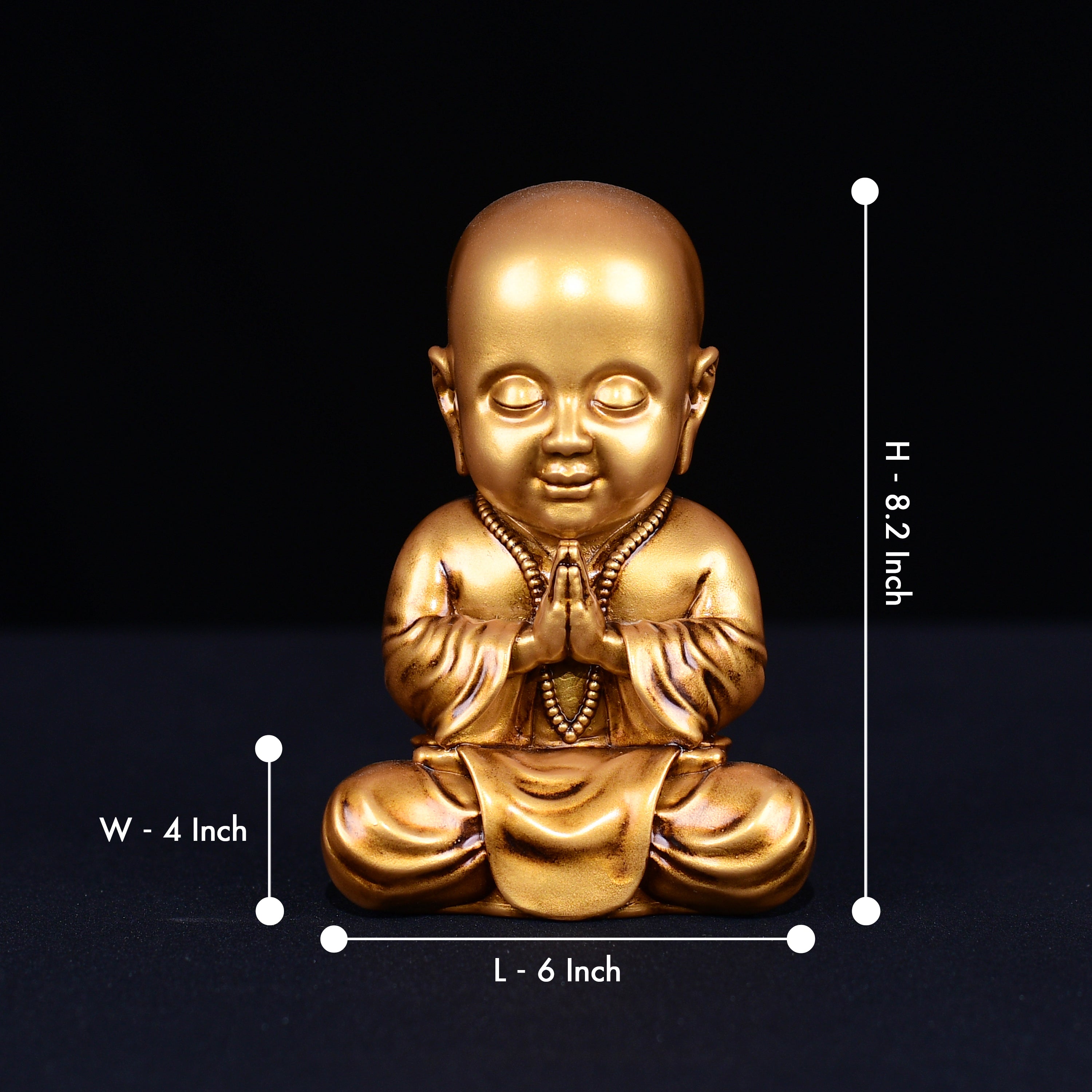 Enhance your space with the Meditating Baby Monk statue, a charming god idol that brings tranquillity and positive energy to any room. This exquisitely crafted piece captures the innocence and spiritual wisdom of a young monk in deep meditation, eyes gently closed and hands folded in peaceful prayer. Perfect for display on a shelf, desk, or mantel, this statue serves as a serene reminder to pause, breathe, and embrace mindfulness. Its compact design ensures it complements various home decor styles, from modern minimalist to classic traditional.
