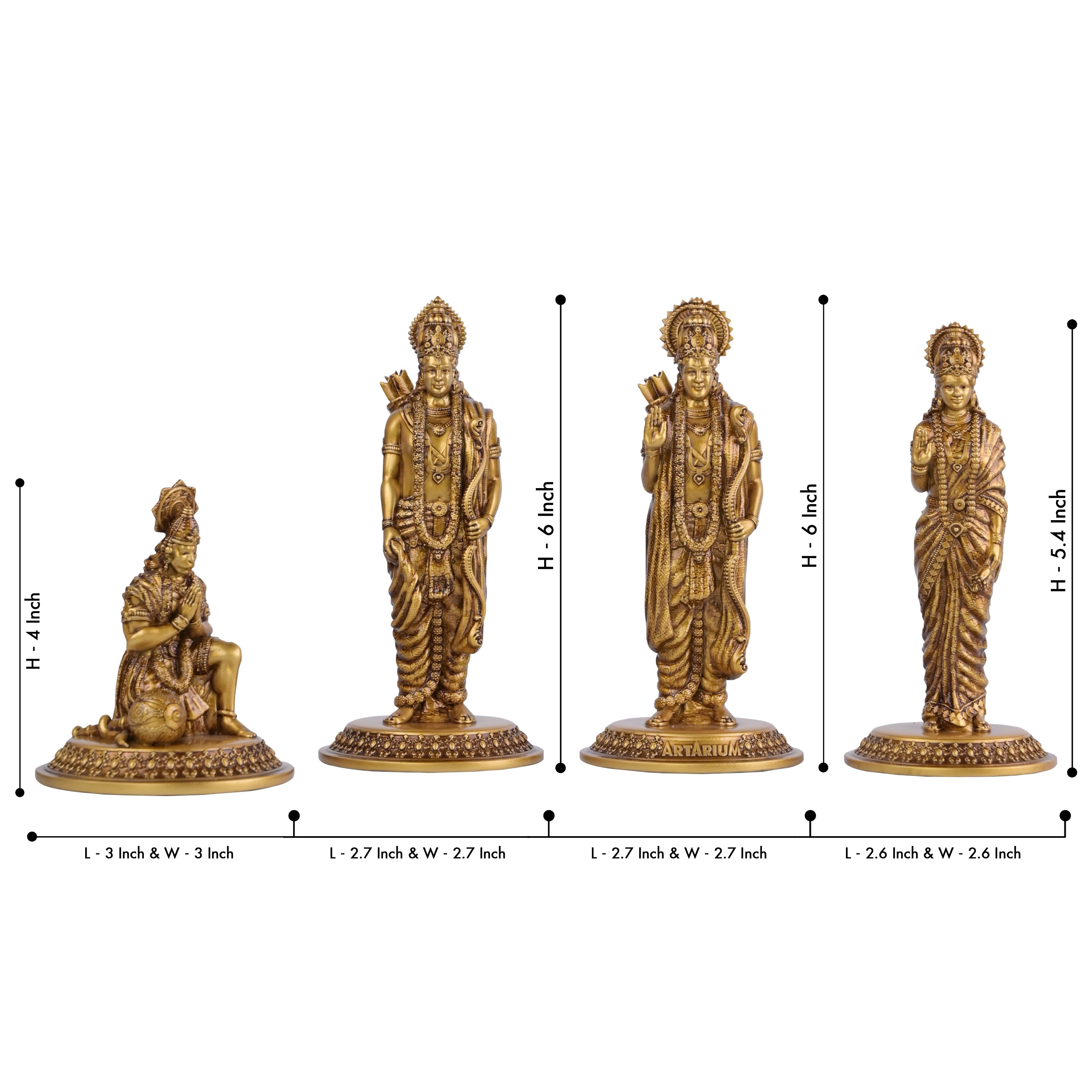 The Ram Darbar statue is a sacred depiction of Lord Ram, Sita, Laxman, and Hanuman, representing love, devotion, loyalty, and righteousness. Lord Ram stands as a symbol of moral integrity and leadership. Beside him is Sita, embodying virtue and grace, while Laxman on the right showcases steadfast loyalty. Hanuman, seated below, embodies strength and devotion. This powerful ensemble serves as an inspiration for living with truth, love, and devotion.