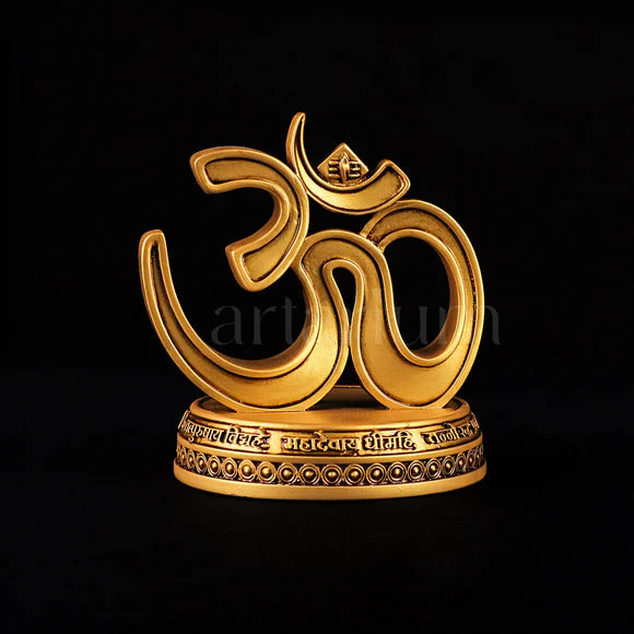 With our exquisitely crafted Om idol, which adds tranquilly and positivity to any space, you can find inner peace. The sacred syllable A-U-M, which stands for the primordial sound from which the universe originated, also symbolises the Hindu trinity: Shiva, the destroyer, Vishnu, the preserver, and Brahma, the creator. Lucky passages from the Gayatri Mantra, which is said to awaken and broaden consciousness, are displayed on the pedestal.