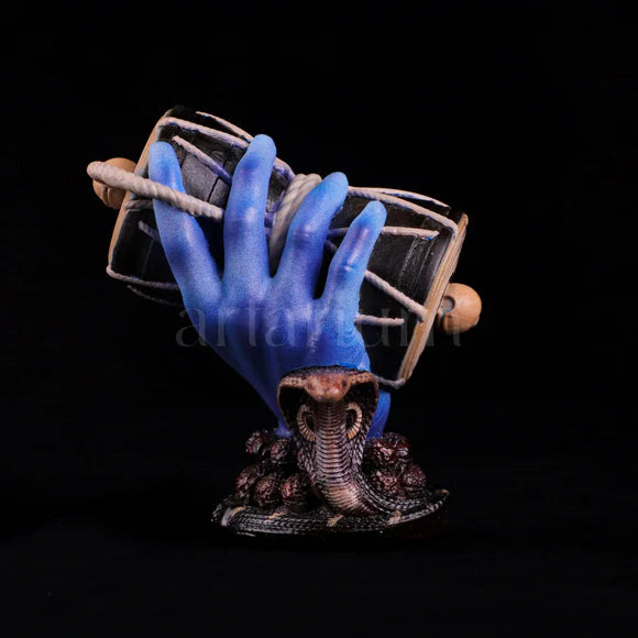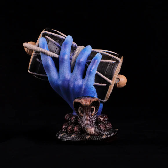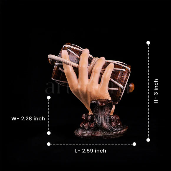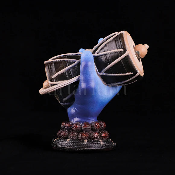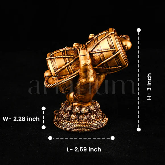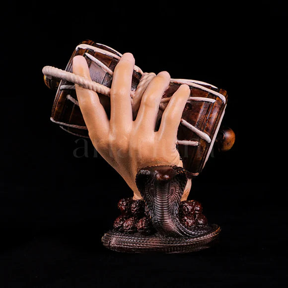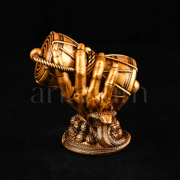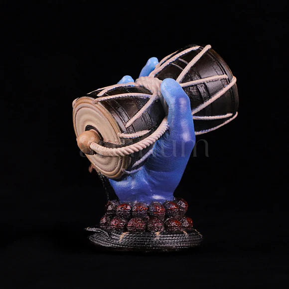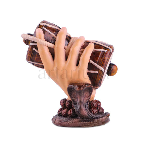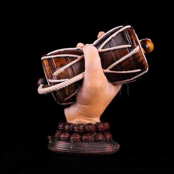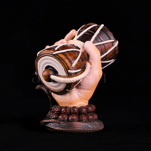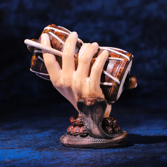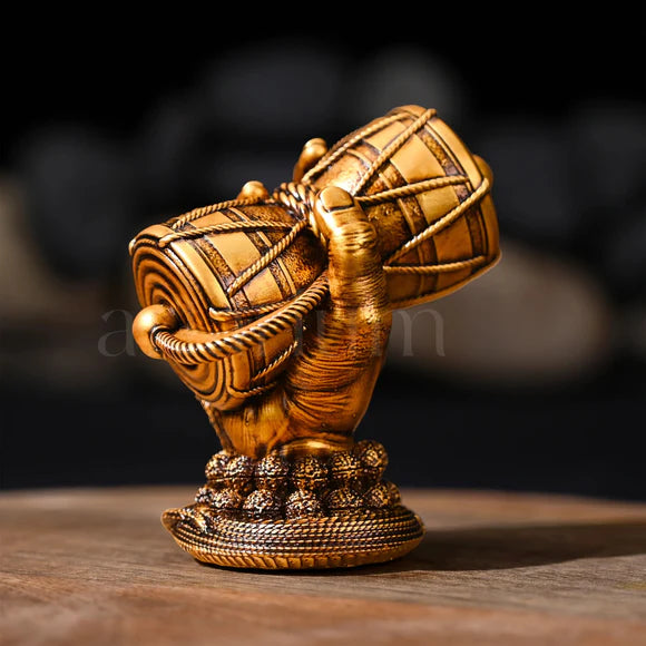 The Shiv Damru, which represents the rhythm of life, creation and destruction, birth and death, embodies Lord Shiva's cosmic power. It is thought to be the origin of the primordial sound that gave rise to the cosmos.