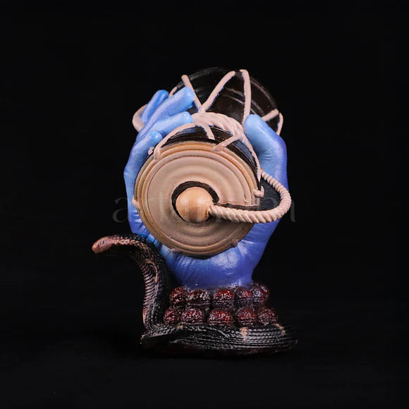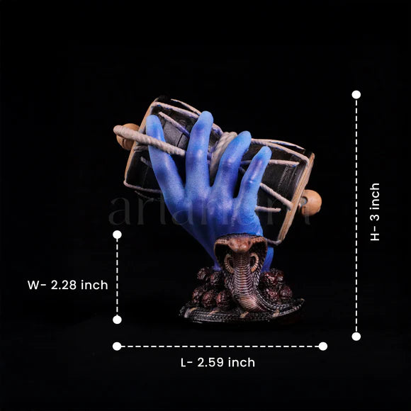 The damru in Shiva's hand, embellished with Rudraksha beads and the Vasuki Naag around his wrist, is depicted in this exquisitely made murti. A classic addition to your house, vehicle, or bookshelf, it exudes divine strength that repels negativity and brings tranquilly into your surroundings.