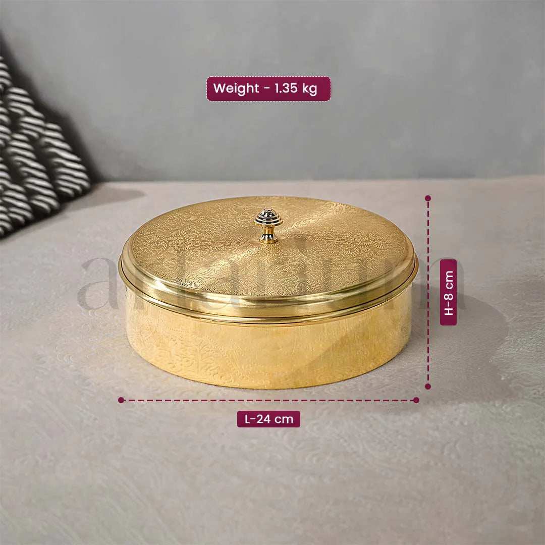Keeping your spices organized is effortless with the brass spice box that comes with a small spoon. Designed to meet daily cooking needs, this spice box features separate compartments for different spices and a sturdy lid to keep them fresh. The included brass spoon makes measuring spices more convenient. Durable and compact, this box is a practical choice for home cooks who prefer traditional kitchen tools with modern utility.